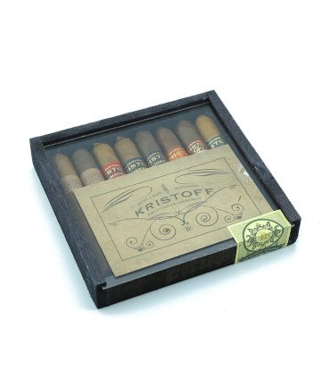 A Dominikai Köztársaságból származó jó ár-érték arányú márka nyolc finom prémium keverékét egyesítették ebben a nagyszerű ízű ajánlatban. Az ízletes Kristoff szivarokra jellemző a pimasz malacfarok minden egyes vitola fején megtalálhatóak. A kóstoló rendkívül reprezentatív keresztmetszetet nyújt a márka változatos sorozataiból.